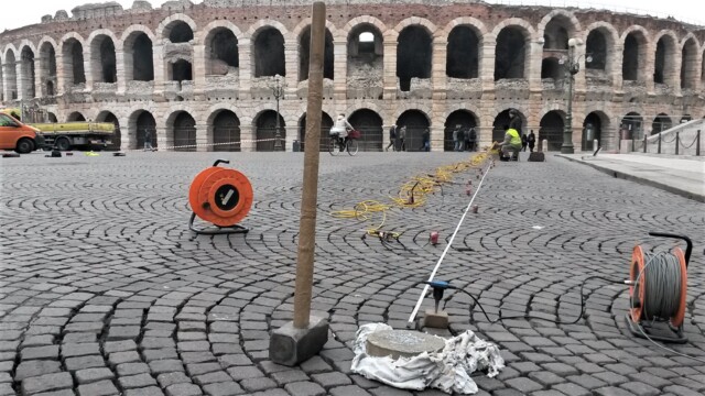 • prospezioni sismiche attive MASW (Multichannel Analysis of Surface Waves ovvero Analisi Multicanale delle onde Superficiali di Rayleigh) volte alla determinazione della curva di dispersione delle onde di Rayleigh mediante analisi di correlazione di misure effettuate su antenne sismiche del segnale prodotto da una sorgente;